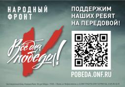 Общероссийское общественное движение "НАРОДНЫЙ ФРОНТ "ЗА РОССИЮ" реализуется проект "Все для Победы!", направленный на поддержание бойцов на передовой специальной военной операции и мирных жителей новых и приграничных регионов.